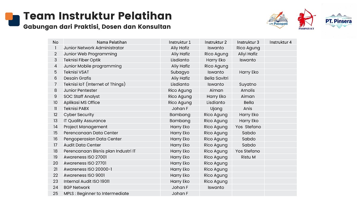 • Jenis Pelatihan